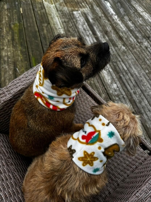Keep your pup warm and stylish this winter with our handmade fleece snoods, lovingly crafted for comfort and charm. Each snood is made from soft, high-quality fleece that’s gentle on your dog’s skin and perfect for keeping chilly winds at bay. Designed to slip easily over the head, they provide a snug yet comfortable fit—ideal for walks, playtime, or cosy cuddles at home. Available in two beautiful patterns, each snood adds a touch of seasonal style to your dog’s wardrobe while keeping them toasty warm. Whether your furry friend prefers a festive print or a classic design, there’s a look to suit every personality. These snoods are practical, durable, and machine washable, making them as easy to care for as they are cute. Perfect on their own or paired with one of our matching jumpers or accessories, they’re the must-have winter essential for every fashionable pup. Handmade with love and attention to detail, because your dog deserves the best.