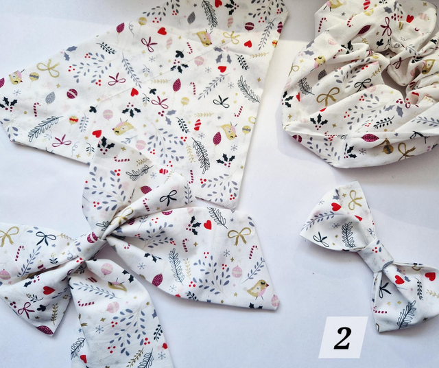 Get your pup (and you!) ready for the festive season with our Handmade Christmas Neckwear Collection – the perfect way to add a touch of holiday magic to every walk and photo! 🎄✨ Each piece is lovingly handmade from premium quality fabrics and available in four charming Christmas patterns, from classic red tartan to whimsical winter prints. Choose from bandanas, bows, or sailor bows – all designed to easily slip onto your dog’s collar for comfort and style. And for the ultimate matching moment, each design also comes with a coordinating hair scrunchie so you and your furry best friend can twin in festive fashion. Whether you’re dressing up for Christmas Day, a holiday photoshoot, or cozy winter walks, this collection is guaranteed to spread smiles and cheer. 🎅❤️