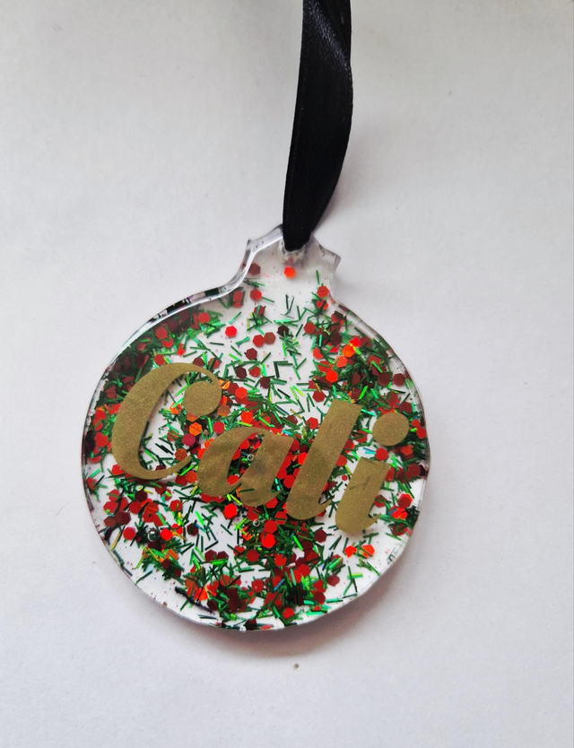 Add a touch of sparkle and personality to your Christmas tree with our Handmade Personalised Resin Baubles! ✨ Each bauble is beautifully crafted from high-quality clear resin and filled with festive glitter for a stunning, long-lasting finish. Choose between two gorgeous styles — classic red and green Christmas mix or elegant silver sparkle — to perfectly match your holiday décor.